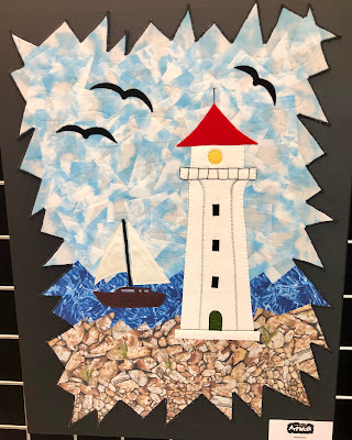 "Through the Window" My 'inspiration piece' led me to isolate the words 'through' and 'ocean' to use as a guide for my design. This quilt depicts our view of Portovenere, Italy, as seen through the windows of Castello Doria, based on our photo taken in 2010. This view inspired many long relaxing spells of absorbing our surroundings, often with a gelato or a glass of red wine! |